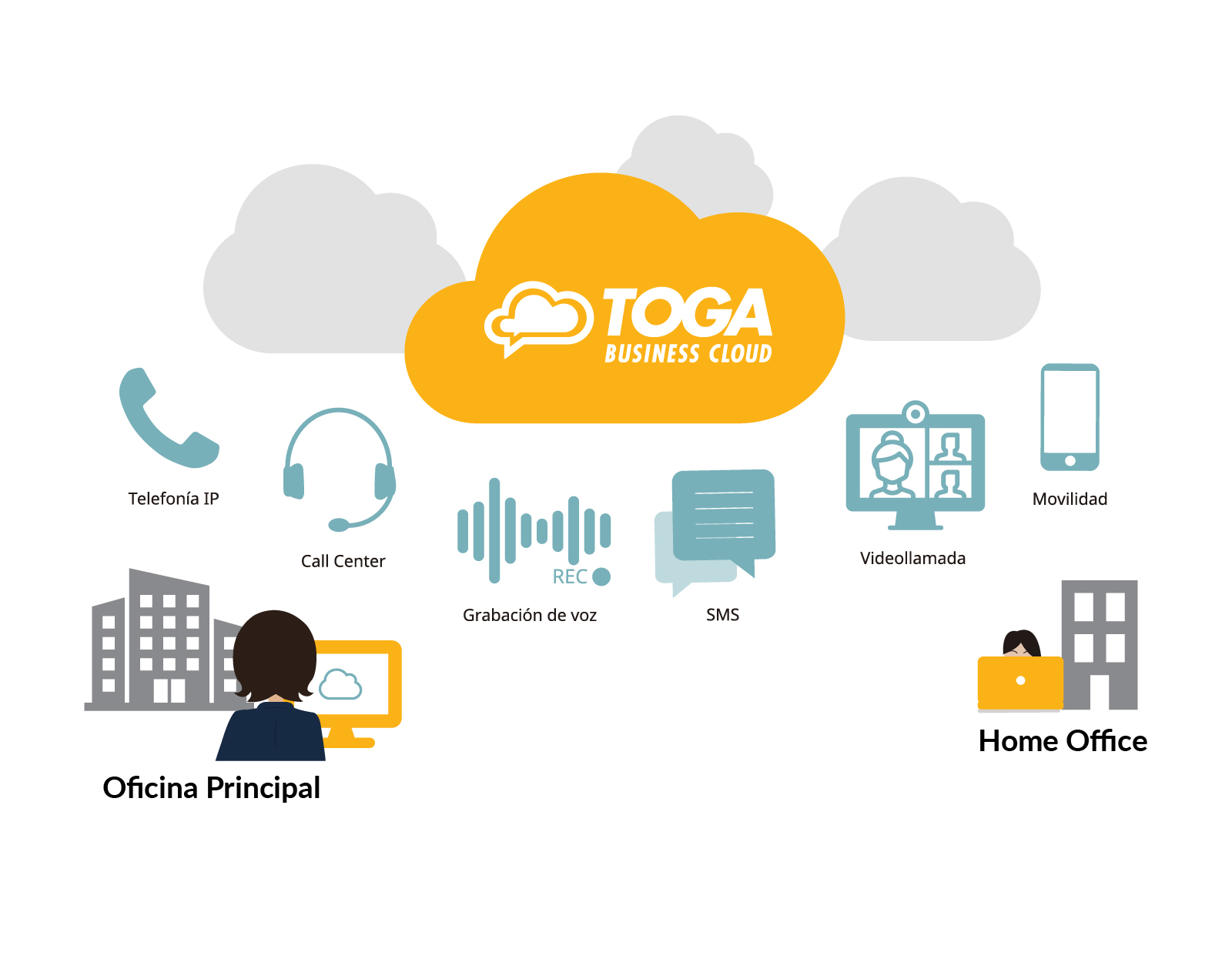 Solución integral de comunicación omnicanal, combinando voz, texto y redes sociales en una única plataforma.