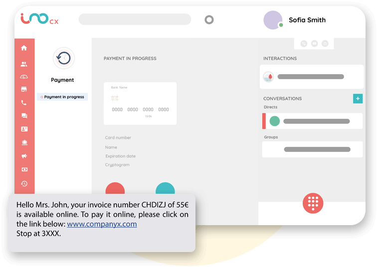 Sus clientes pueden efectuar el pago con un agente o a través de un enlace enviado por SMS/correo electrónico.