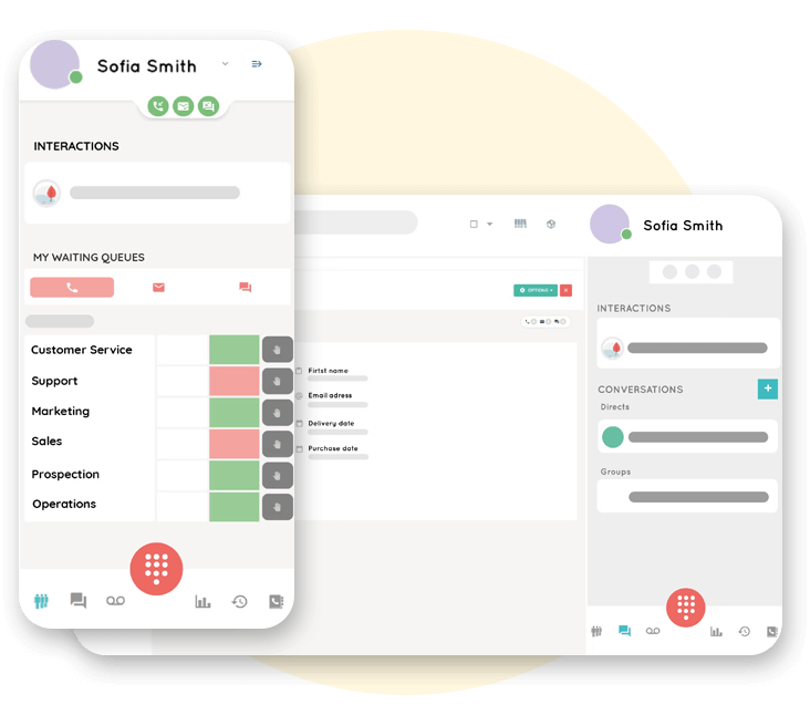 Interactúa con tus clientes a través de diferentes canales (voz, SMS, chat, correo electrónico…) desde cualquier lugar y desde una única interfaz.